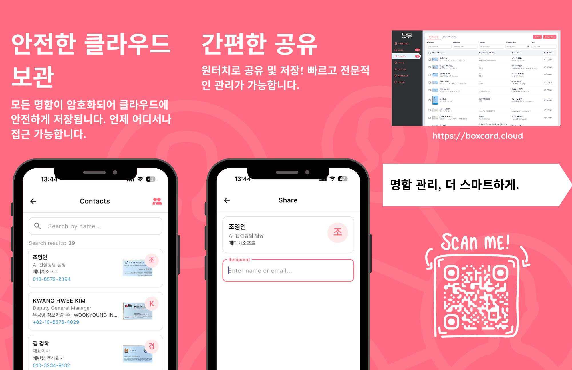 Boxcard를 통해 명함 관리를 더 쉽고 스마트하게 바꿔보세요.