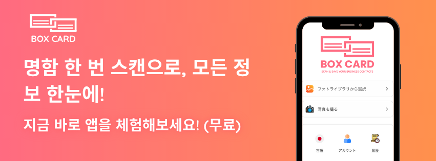 지금 바로 Apple Store 또는 Google Play에서 BoxCard를 다운로드하고, 명함 관리를 더 스마트하게 바꿔보세요.
